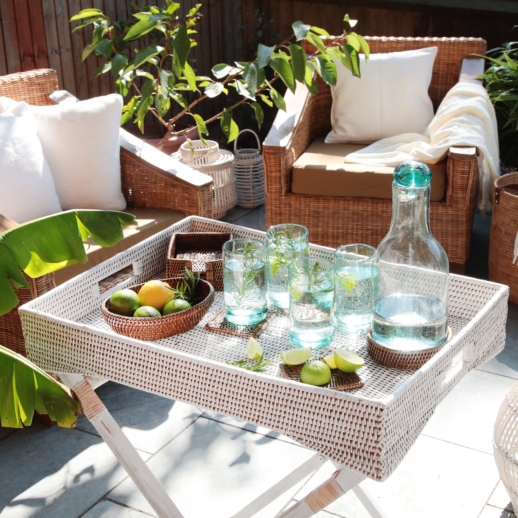 Each rattan tray in our collection is thoughtfully designed to bring function and charm to your home. Our breakfast trays transform morning routines into moments of joy; our serving trays are perfect for anything from casual get-togethers to dinner parties. Pair with our handblown tumblers or carafes to create even more little moments that feel effortlessly special.