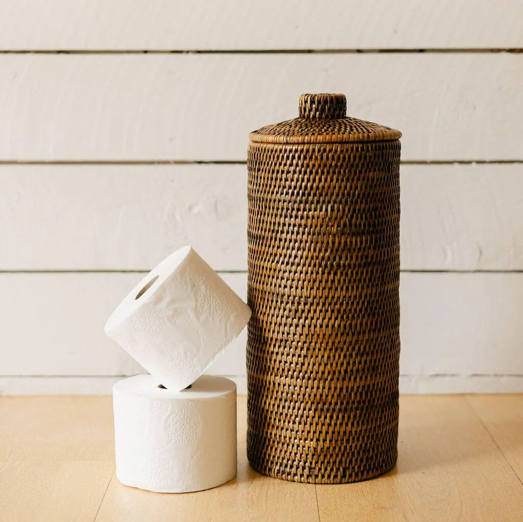 Rattan Cylinder Toilet Roll Holder With Knob Lid